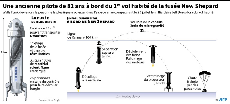 Le milliardaire Jeff Bezos l'a choisie pour embarquer à ses côtés à bord du premier vol habité de sa société spatiale, Blue Origin, prévu le 20 juillet. A 82 ans, cette boule d'énergie aux cheveux courts argentés deviendra du même coup la personne la plus âgée à voyager dans l'espace.