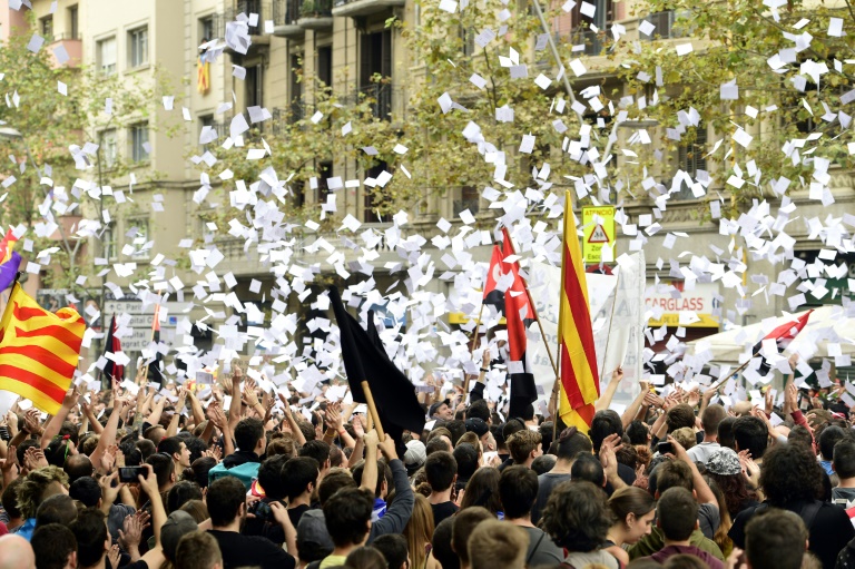 En fin de journée sur le Paseo de Gracia, dans le centre, des dizaines de milliers de personnes se sont rassemblées au son des fanfares, des casseroles et de l'hymne nationaliste "L'estaca". "Regardez! Il n'y aura pas de retour en arrière", a lancé Miriam Lao, 35 ans. Des milliers de manifestants se dirigeaient vers le siège de la police nationale, mais un barrage de fourgons de police les empêchait de s'en approcher. "Ce bâtiment sera une bibliothèque", clame la foule dans un même souffle. Et lorsqu'un manifestant lance "Vive la terre...", tous lui répondent: "...libre!".