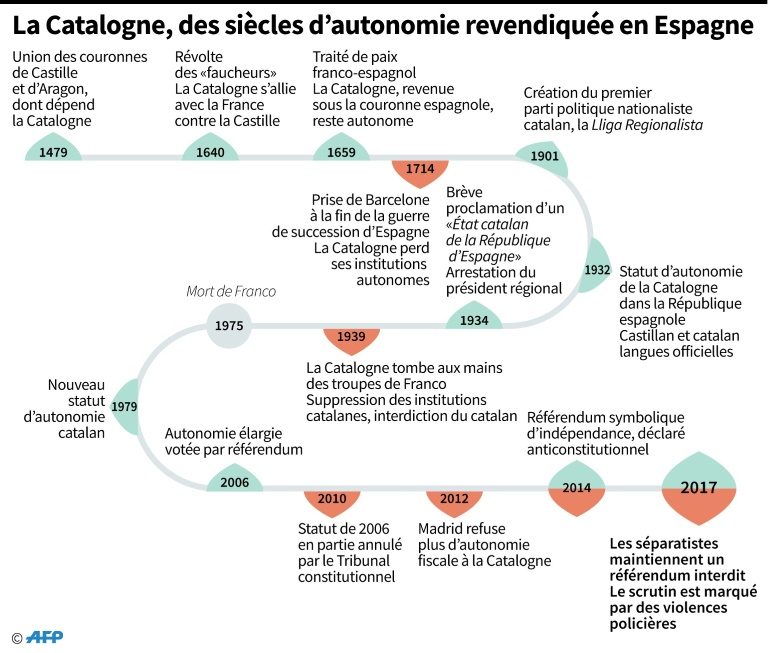 L'épreuve de force entre le gouvernement central et les dirigeants catalans, qui menacent de déclarer l'indépendance, a plongé l'Espagne dans sa crise la plus grave depuis le retour de la démocratie en 1977. Dans une charge aussi rare que cinglante, Felipe VI a accusé les dirigeants catalans de s'être placés "en marge du droit et de la démocratie" en organisant le référendum de dimanche.