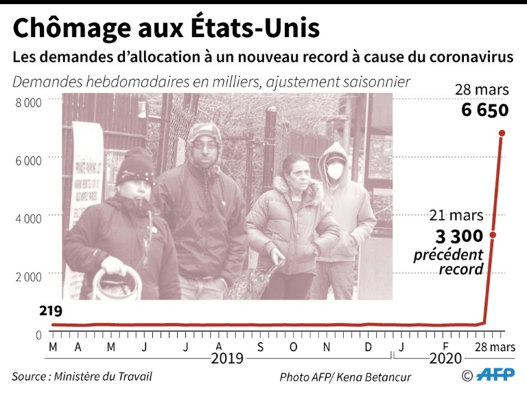 Avant que le nouveau coronavirus ne se répande aux Etats-Unis et ne mette à l'arrêt des pans entiers de l'industrie, en particulier dans les services comme la restauration, l'économie du pays était robuste. Le taux de chômage était ainsi de seulement 3,5% en février, au plus bas depuis 50 ans.
