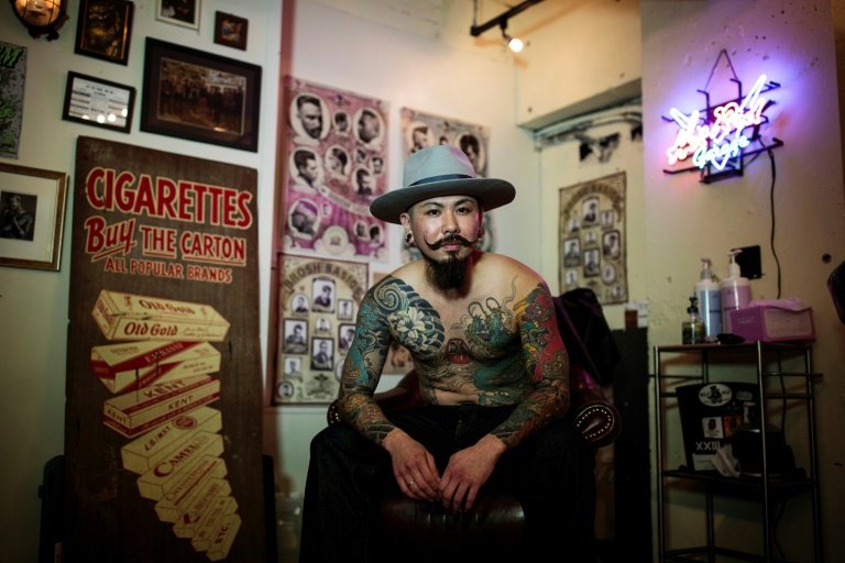 Le Japon a depuis longtemps une relation compliquée avec les tatouages. Au XVIIe siècle, on marquait les criminels en guise de punition. Et, de nos jours, des yakuza expriment leur fidélité à leurs organisations criminelles par le traditionnel "irezumi" qui couvre tout le corps. Lorsque le Japon s'est ouvert sur le monde au XIXe siècle, les tatouages ont été interdits, tout comme la nudité en public ou les charmeurs de serpents, les autorités craignant que les étrangers ne considèrent les Japonais comme "primitifs", selon Brian Ashcraft, auteur de "Japanese Tattoos: History, Culture, Design".
