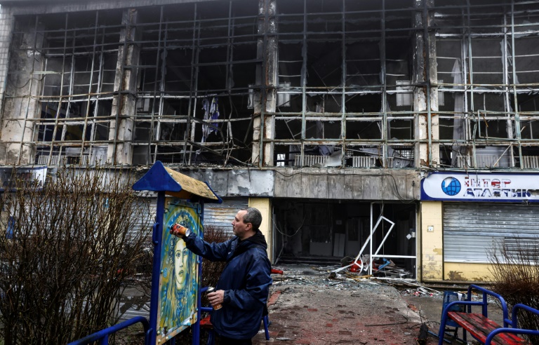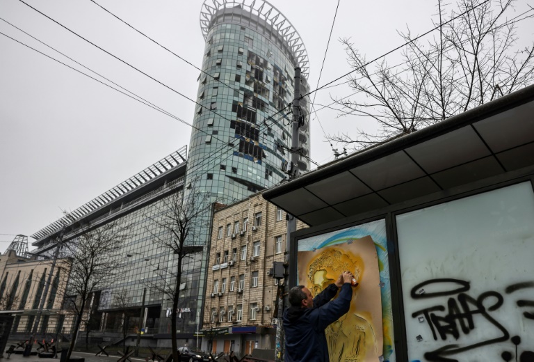 Celle-ci s'affiche désormais dans plusieurs quartiers de la capitale ukrainienne. Avec l'AFP, C215 fait le tour de ses œuvres: l'une a été peinte sur un panneau rouillé près de la tour de télévision de la ville, visée début mars par une frappe de missile qui avait fait cinq morts.