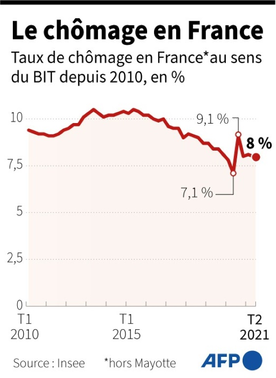Le taux de chômage est resté stable au 2e trimestre, à 8,0%, très légèrement en dessous de son niveau de fin 2019 avant la crise sanitaire, porté par une amélioration "assez nette" de la situation des jeunes.