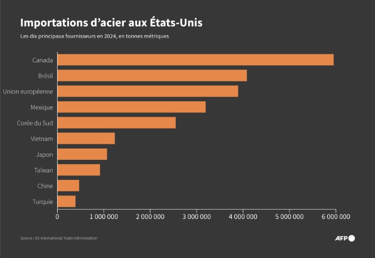 Réagissant à l'annonce par la province canadienne de l'Ontario d'une surtaxe sur les exportations d'électricité vers trois Etats américains, il a annoncé sur son réseau Truth Social qu'il doublait à 50%, contre 25% auparavant, les droits de douane sur l'acier et l'aluminium canadiens, devant entrer en vigueur mercredi.