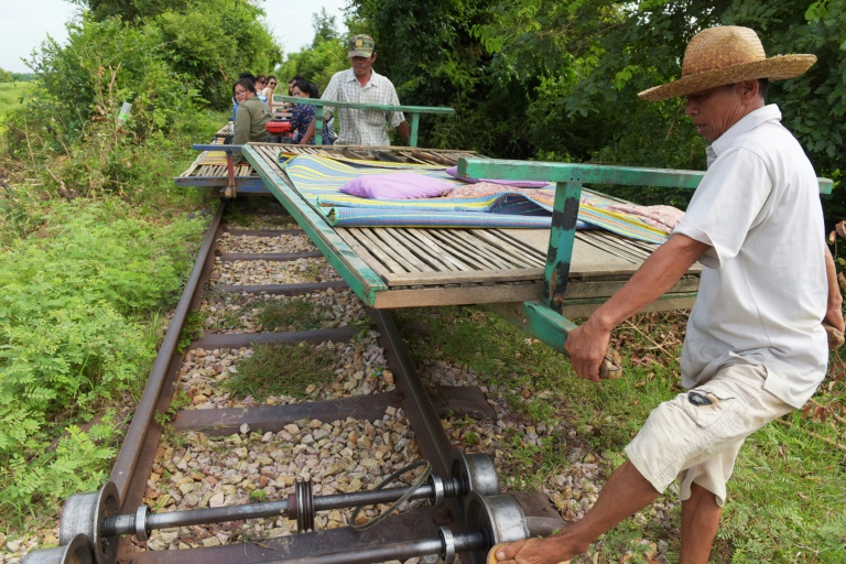 Dans l'ouest du Cambodge, dans la région des fameux temples d'Angkor, les touristes les plus aventureux peuvent traverser les rizières à bord d'un "train de bambou", une simple plateforme équipée d'un moteur. Mais plus pour longtemps.