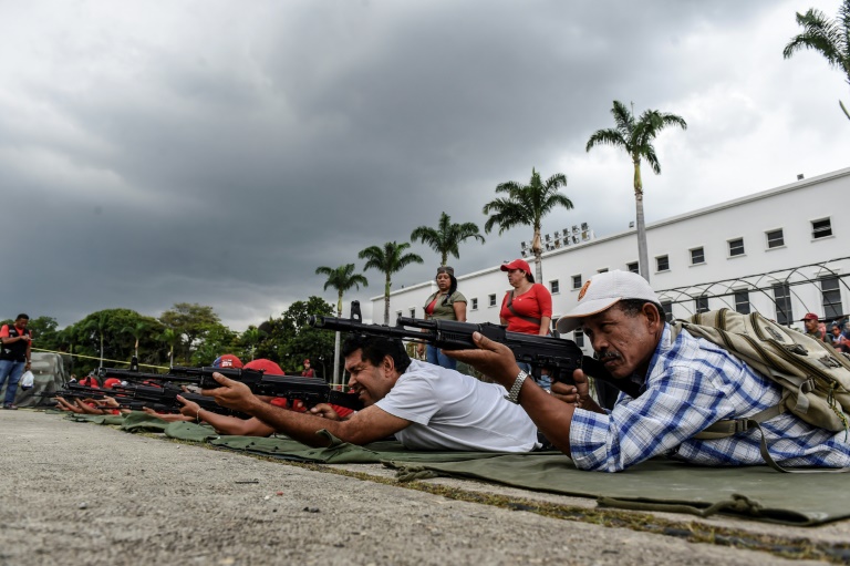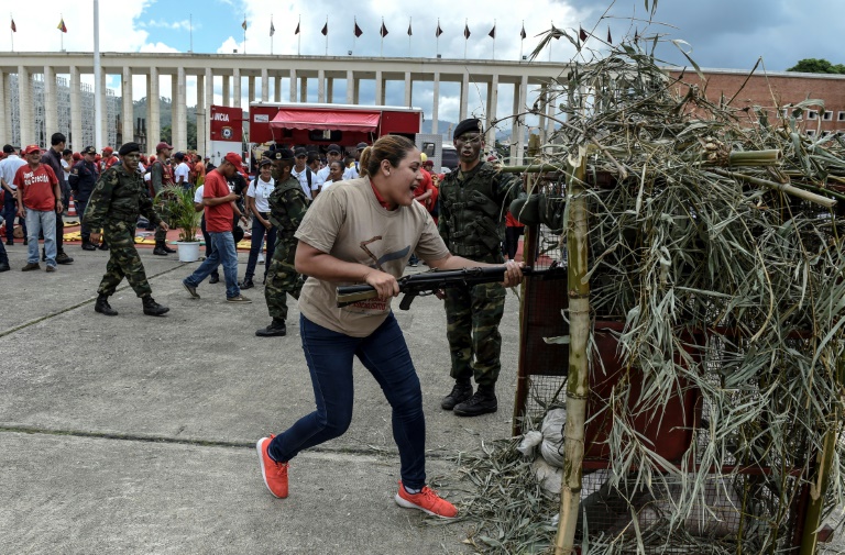 A Caracas, où forces de l'ordre et miliciens ont défilé, des partisans du gouvernement vêtus de rouge s'essayaient au maniement du fusil ou aux techniques de combat. "Yankees, hors d'ici!", vocifère Erica Avendaño, 60 ans, en frappant deux mannequins à l'aide d'un long fusil trop lourd pour elle. "J'espère qu'il ne se passera rien, mais nous sommes prêts à tout" !