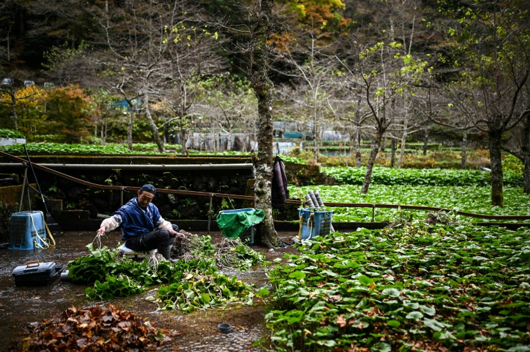 Et pourtant, beaucoup de consommateurs ne connaissent que son imitation, une pâte à base de raifort artificiellement colorée, mais la pandémie force les producteurs japonais à tenter d'élargir leur clientèle. Verte et piquante, cette racine pousse en 12 à 18 mois et n'est produite que dans une poignée de régions japonaises, car sa culture requiert des conditions très particulières. "L'ingrédient le plus important, c'est de l'eau pure, en abondance", explique Yoshihiro Shioya à l'AFP, en sortant un plant de wasabi du sable. "Il faut absolument que la température de cette eau reste entre 10 et 15 degrés toute l'année".