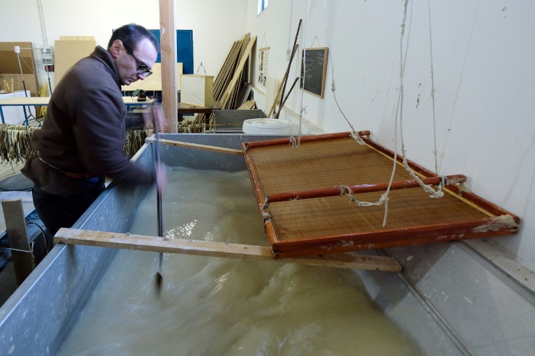 Seules trois communautés la pratiquent encore au Japon, notamment dans le quartier de Misumi-cho à Hamada, dans la région de Shimane (ouest), où Benoît s'est formé auprès de deux maîtres papetiers.