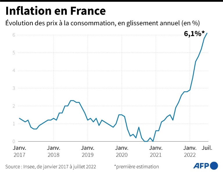L'indice des prix à la consommation, dont l'Insee a publié vendredi matin une première estimation pour le mois de juillet, vient d'ailleurs de franchir la barre des 6% (+6,1% sur un an après +5,8% en juin).