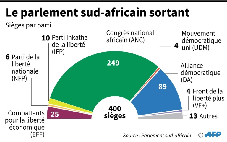 Le bilan d'un quart de siècle de gouvernement ANC laisse sérieusement à désirer. Le chômage a atteint des proportions endémiques (27%), la corruption a gagné le plus haut sommet de l'Etat et les inégalités sociales se creusent. Avant le scrutin, l'opposition a lourdement insisté sur ces échecs et appelé le pays à sanctionner l'ANC.