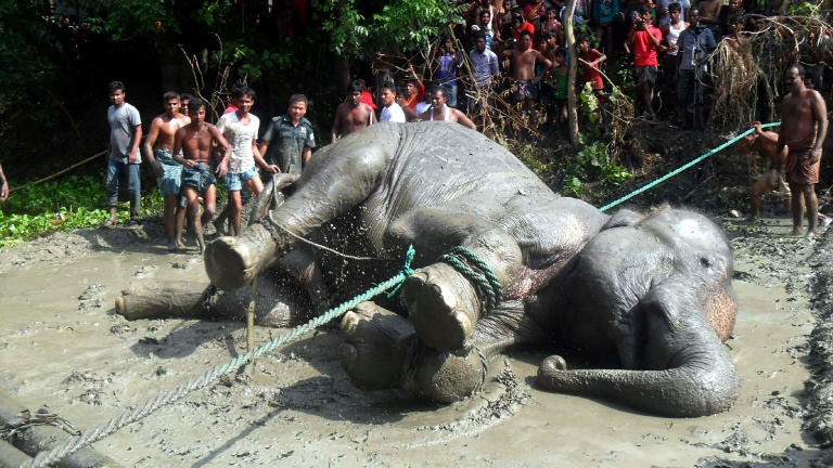 Des villageois étaient parvenus à l'immobiliser jeudi en le touchant avec une fléchette tranquillisante. Celle-ci l'avait cependant rendu brusquement furieux et l'animal avait chargé en direction d'une mare.