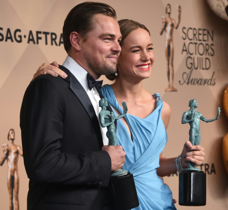 Brie Larson et Leonardo DiCaprio ont fait un pas de plus vers l'Oscar samedi en triomphant aux SAG Awards, lors d'une soirée marquée par la victoire de nombreux acteurs noirs en plein débat sur le manque de diversité à Hollywood.