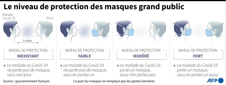 Il a ainsi décliné la "règle ABCD pour savoir quand il faut le porter": "A, quand on est à risque, fragile, âgé ; B quand on est dans un lieu bondé ; C pour les endroits clos; D quand la distance est impossible à gérer". Le gouvernement a également promis cette semaine de renforcer les contrôles là où le masque est obligatoire.