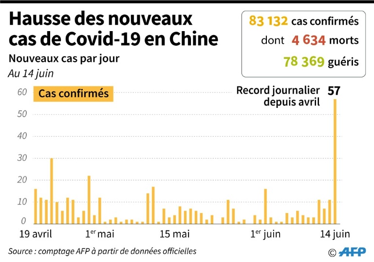 Selon les autorités chinoises, 57 nouveaux cas confirmés de contamination au coronavirus ont été recensés en 24 heures, dont 36 à Pékin, le plus haut chiffre quotidien depuis avril. Une nouvelle inquiétante pour le reste du monde qui redoute une seconde vague de l'épidémie, qui continue à faire rage en Amérique latine.