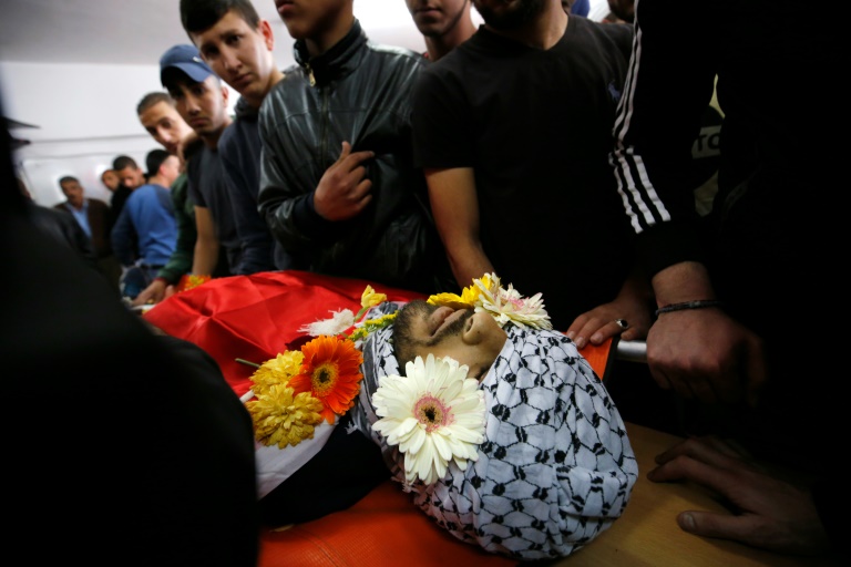 Des milliers de Palestiniens ont suivi mardi aux cris de vengeance les funérailles d'Iyad Omar Sajdia, étudiant en journalisme de 22 ans enroulé dans le drapeau palestinien. Son sang maculait encore le bâtiment sur le toit duquel il a été tué.