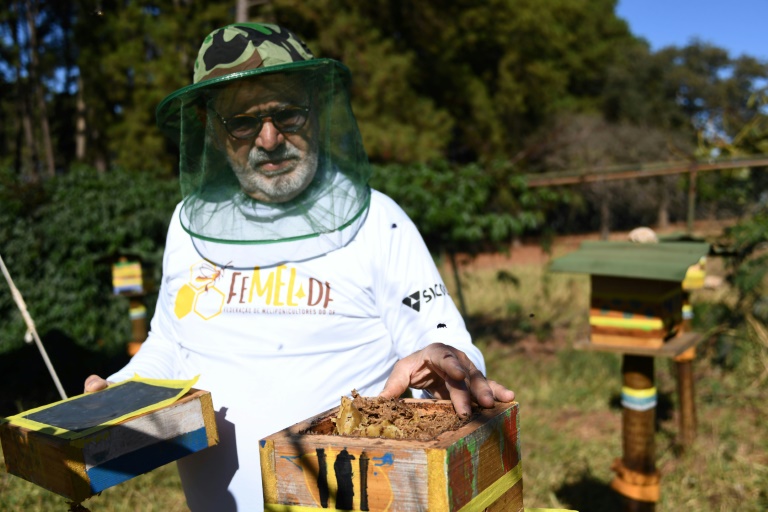 "Mais ce n'était pas seulement les abeilles, mais toute la nature" qui l'était, dit-il. "Nous expliquons aux enfants que ces abeilles ne piquent pas, qu'elles sont nécessaires à l'environnement, à la nature, et qu'elles sont là pour nous aider", dit M. Lustosa, interrogé à l'Institut où il organise des ateliers sur la reproduction des abeilles, et vend du miel natif.