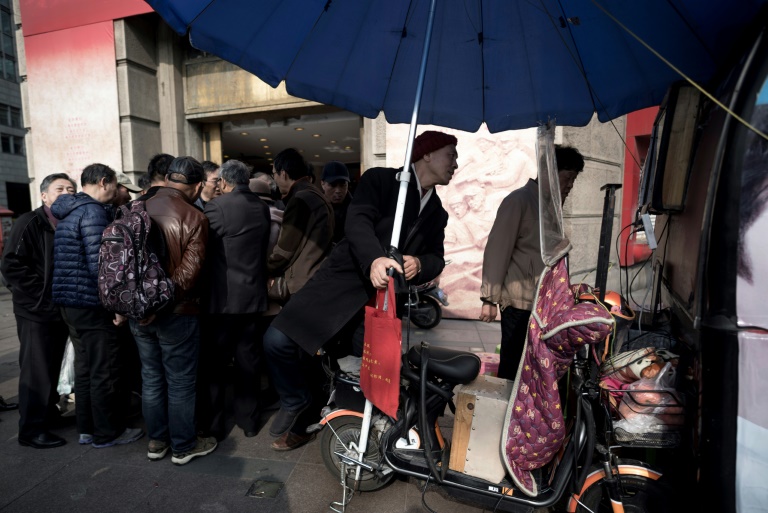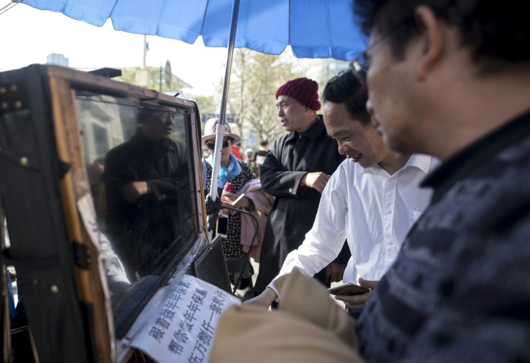 Comme il le fait depuis une dizaine d'années, Shen Yuxi, 61 ans, tente d'écouler un "logiciel d'analyse boursière" qu'il propose à la démonstration sur un vieil écran d'ordinateur posé sur une sorte de chariot comme en utilisent les vendeurs de rue.