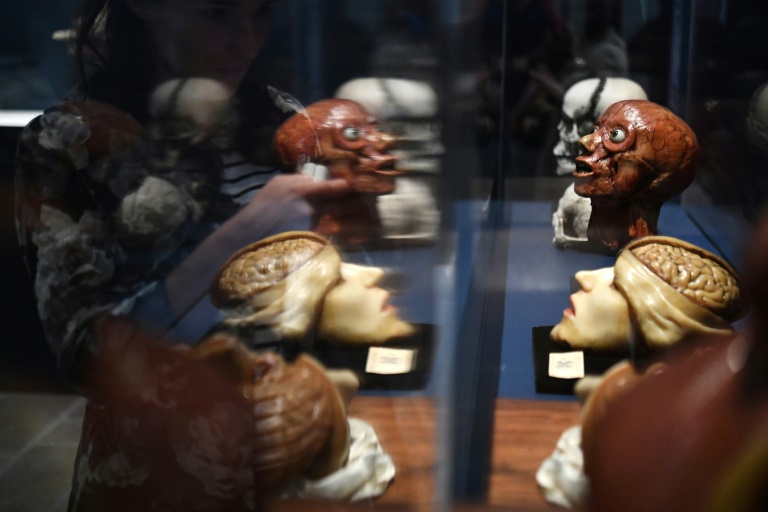 "C'est la plus ancienne pièce de nos collections, elle date de la fin du XVIIe siècle", explique à l'AFP Marie-Angeline Pinail, régisseur des collections à l'université de Montpellier, tournant le dos à un buste momifié grandeur nature, représentant une femme à barbe.