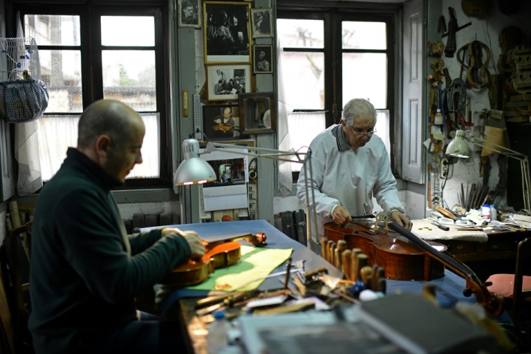 "Pour faire un violon de qualité, il faut bien sélectionner son bois", explique Antonio. Aujourd'hui, les Capela utilisent exclusivement "de l'érable des Balkans pour le fond et de l'épicéa d'Italie pour la table d'harmonie: ils possèdent des qualités acoustiques formidables", détaille le luthier en sortant de sa housse le tout premier violon façonné par son père, alors en platane, pour le montrer aux journalistes de l'AFP.