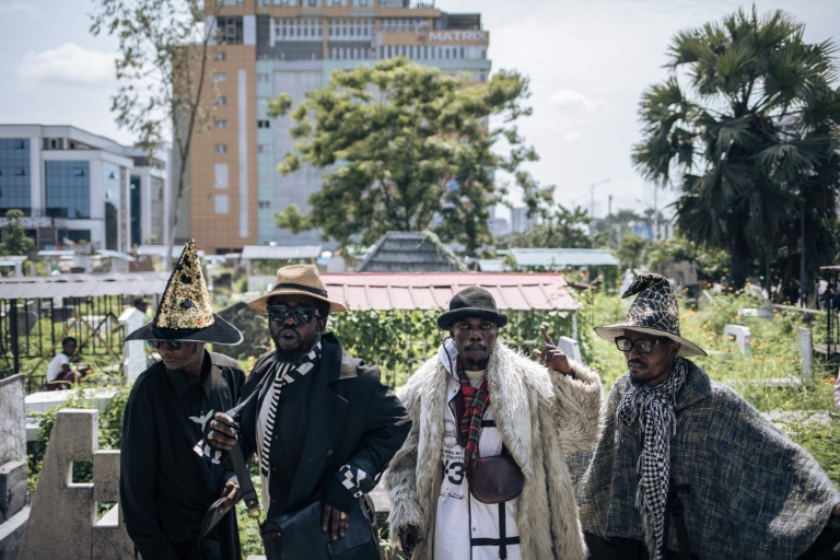 Tenues excentriques et griffes de luxe, air bravache et démarche balancée, les dandys "sapeurs" congolais paradent à Kinshasa près de la tombe de leur idole, en ce 10 février, jour anniversaire de sa mort survenue il y a 28 ans.