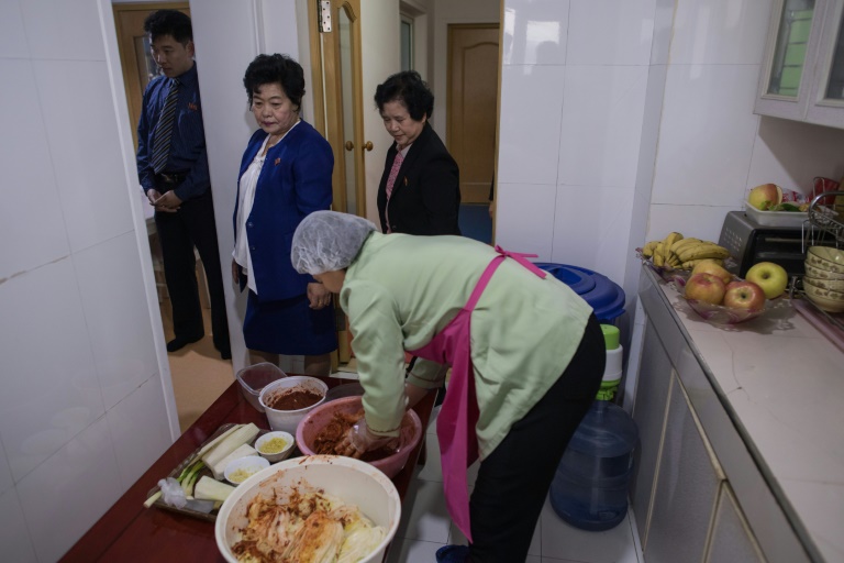 L'AFP avait demandé à interviewer une famille nord-coréenne à propos du kimjang, ce qui explique cette visite dans l'appartement de Mme Song. Celui-ci donne sur des statues géantes du fondateur de la Corée du Nord Kim Il-Sung et de son fils et successeur Kim Jong-Il.