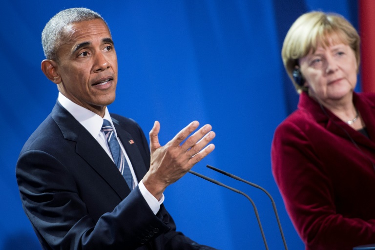 Les principaux dirigeants européens et Barack Obama ont appelé vendredi au maintien de la coopération au sein de l'Otan et des sanctions contre Moscou, deux sujets sur lesquels le successeur désigné du président américain, Donald Trump, a pris ses distances.