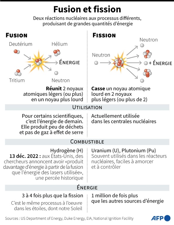 Les Etats-Unis ont annoncé mardi une percée scientifique historique dans le domaine de la fusion nucléaire, qui pourrait d'ici quelques décennies révolutionner la production d'énergie sur Terre.