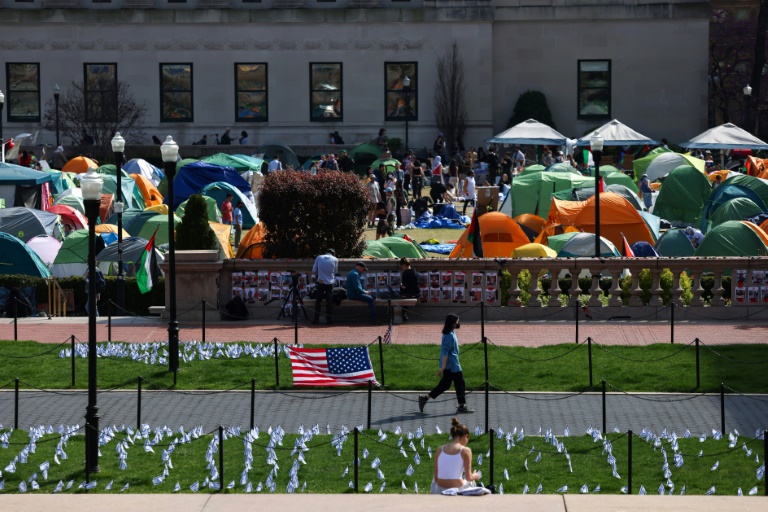 La tension est montée d'un cran lundi à l'université de Columbia à New York, épicentre des manifestations pro-palestiniennes qui secouent de nombreux campus aux Etats-Unis, l'administration menaçant les étudiants de sanctions s'ils ne se dispersaient pas.