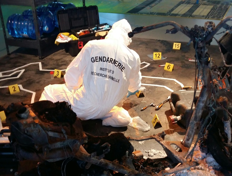 Un bidon d'essence qui jonche le sol, un scooter calciné et la silhouette de la victime dessinée au scotch blanc: le musée a reconstitué une scène de crime pour cette exposition baptisée "Les sciences du crime", qui propose au public de "lever le mystère sur le travail de la gendarmerie scientifique", explique Patrick Touron, directeur de l'Institut de recherche criminelle de la gendarmerie nationale (IRCGN).
