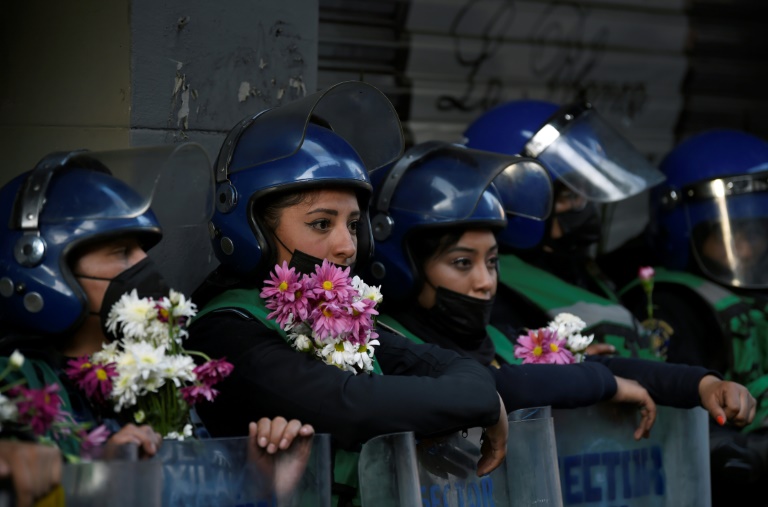 A Santiago du Chili, la prochaine première dame, Irina Karamanos, a marché aux côtés d'une foule immense de femmes rassemblées sous le slogan "Pour la vie qu'ils nous doivent".