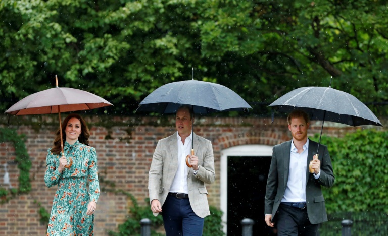 Alors que les médias ont multiplié émissions et dossiers sur la toujours très populaire princesse de Galles, Harry, William et sa femme Kate ont visité sous une pluie battante et dans l'intimité, en début d'après-midi, le jardin blanc éphémère créé à sa mémoire au palais de Kensington, où elle résidait à Londres.