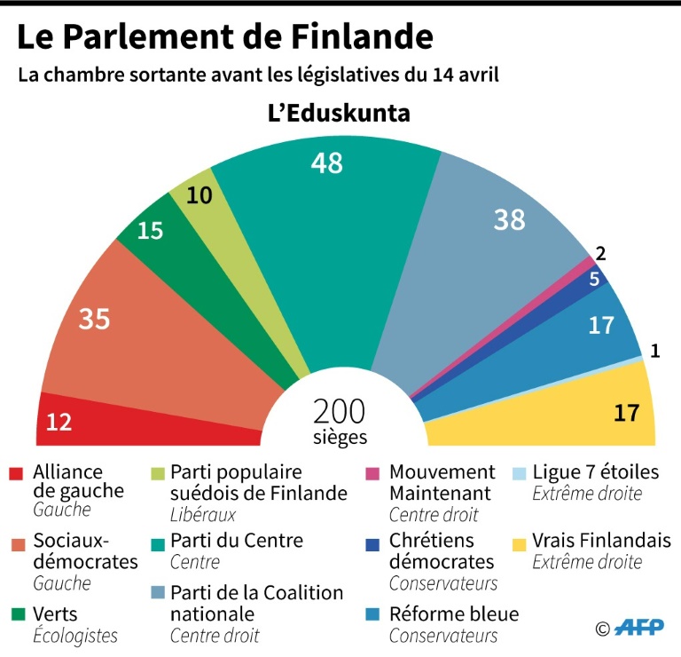 Eprouvés par quatre années d'austérité ayant permis de sortir le pays nordique de l'ornière, les Finlandais votent dimanche pour reconduire la coalition de centre-droit ou élire les sociaux-démocrates, favoris face à une poussée attendue de l'extrême droite.