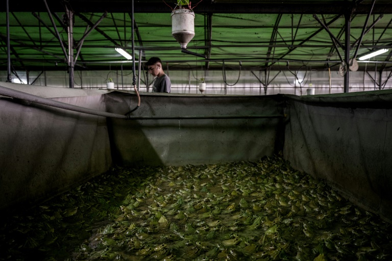 Il n'existe qu'une poignée d'élevages en France. "La raniculture, c'est dur !", explique à l'AFP le patron de François Production, au milieu des dizaines de bassins grouillant de grenouilles installés sous 2.500 m2 de serres dans une touffeur tropicale.