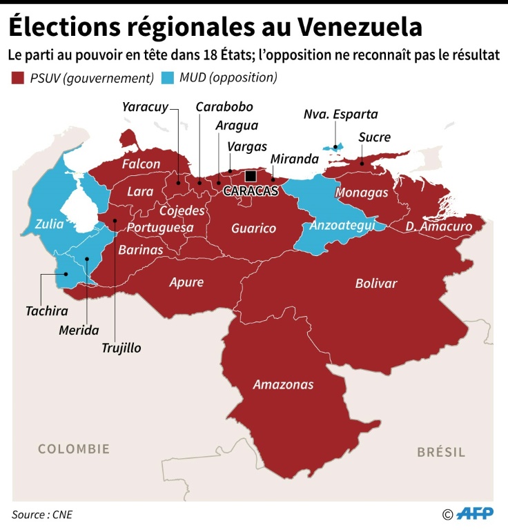 Les résultats des élections régionales ont été rejetés par la MUD et mis en doute par les Etats-Unis, l'Union européenne et une douzaine de pays d'Amérique latine, qui ont demandé un audit indépendant.
