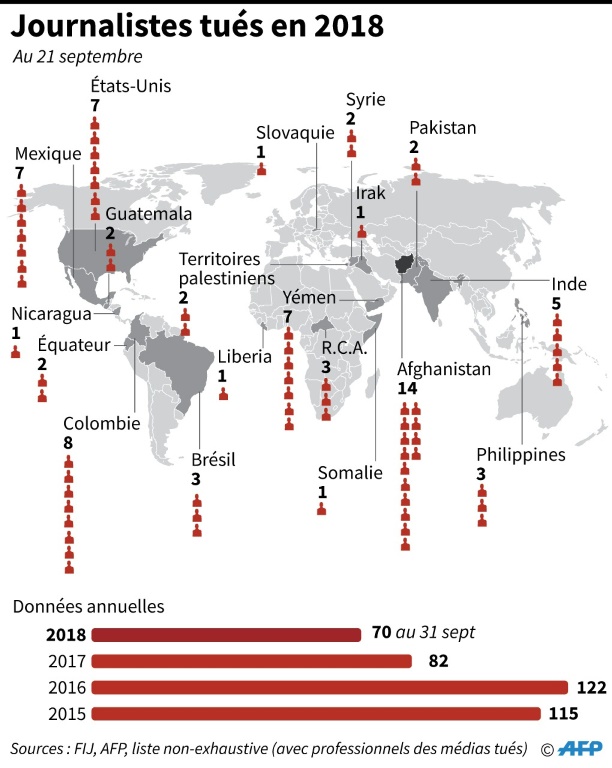 Selon RSF, quelque 60 journalistes et employés de presse ont été tués en Afghanistan depuis l'invasion américaine de 2001 qui a mis fin au régime taliban et a permis l'éclosion d'une industrie de médias indépendants.
