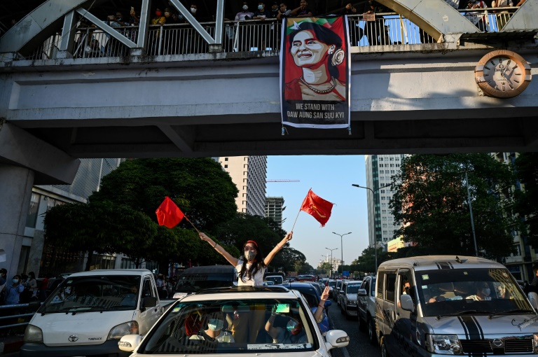 Ailleurs dans Rangoun, d'autres manifestants se sont rassemblé devant le siège de la Ligue nationale pour la démocratie (LND) d'Aung San Suu Kyi, habillés de rouge -la couleur de la LND- et brandissant des portraits de leur dirigeante, arrêtée après le putsch.