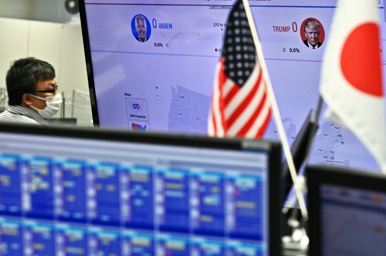Les Bourses mondiales scrutaient nerveusement mercredi les premiers résultats de l'élection présidentielle américaine entre Donald Trump et Joe Biden, et la victoire revendiquée par le président américain alors que plusieurs Etats clés n'ont pas encore affiché de résultats.
