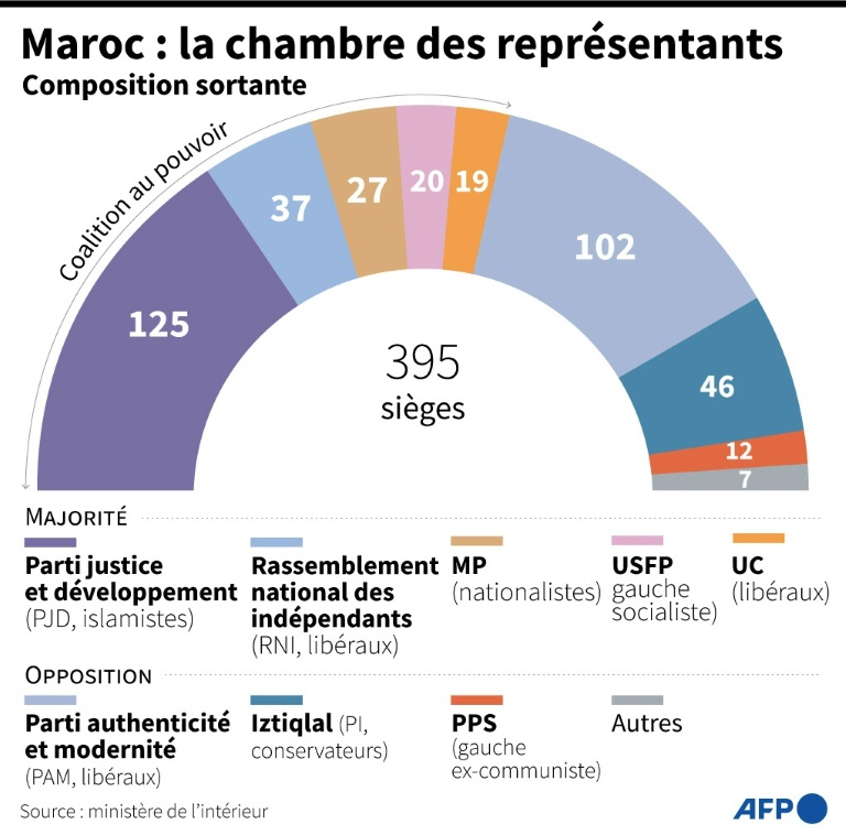 Longtemps cantonné dans l'opposition, le Parti justice et développement (PJD, islamiste modéré), dirigé par le Premier ministre sortant Saad Eddine El Othmani, espère briguer un troisième mandat consécutif à la tête du gouvernement.