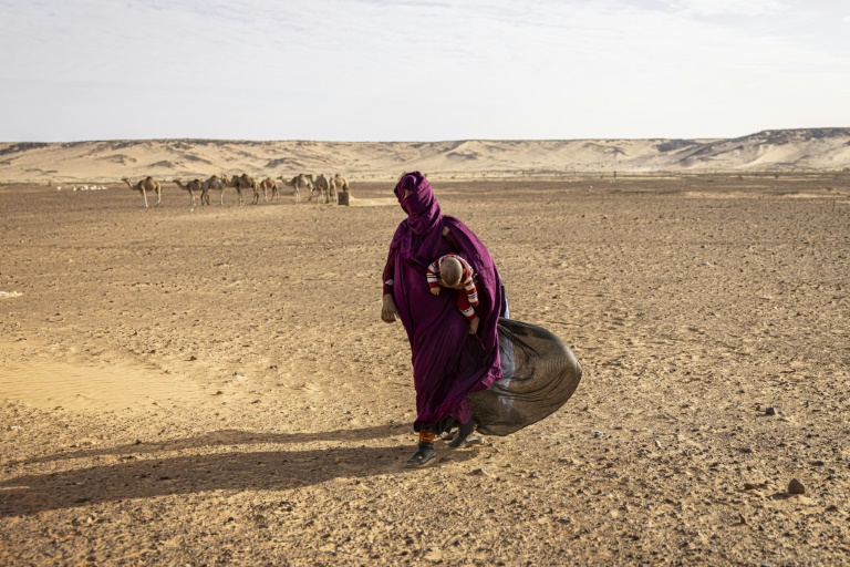Sur ces plateaux battus par les vents et le sable, où les températures peuvent atteindre les 50 degrés Celsius, les conditions de vie des Bédouins sont précaires. "Ici, c'est très loin des grands axes, on n'a pas de réseau, pas de voitures, pas de boutiques", se lamente Boddeh Woul Cheikd, la cinquantaine, drapée d'un voile couvrant son visage.