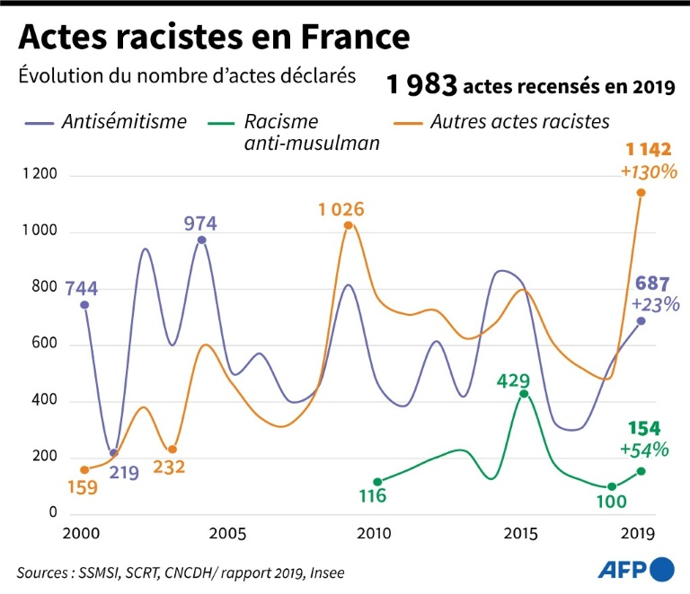 La commission relève un paradoxe: "Alors que la minorité noire est avec la minorité juive celle qui a la meilleure image", selon son baromètre sur la tolérance des Français, "elle est en butte au quotidien à des préjugés offensants et des discriminations nombreuses". "Sur les réseaux sociaux ou dans les stades, s'exprime un racisme antinoirs extrêmement cru, animalisant et violent, construit par opposition à une norme blanche", constate-t-elle.