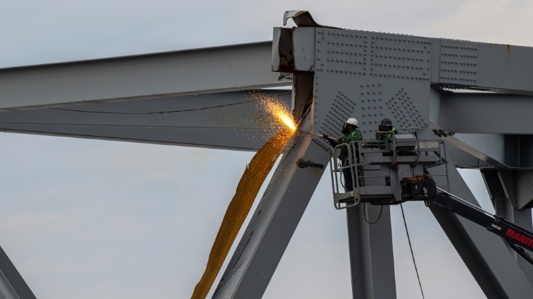 Une vidéo publiée par les autorités samedi a montré des ouvriers en train de découper des poutres en métal à l'aide d'instruments spécialisés. Ces travaux sont réalisés sur une portion supérieure du pont restée hors de l'eau.