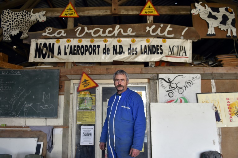 Le projet d'aéroport est comme une épée de Damoclès dont il en entend parler depuis qu'il est tout petit. "Papa disait: +je ne sais pas si je vais aller jusqu'à la retraite, c'est pas sûr+", raconte ce moustachu en bleu de travail, dans la pièce d'un hangar aux murs couverts d'affiches anti-aéroport.