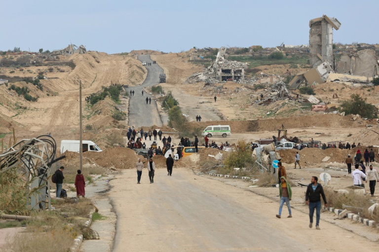 L'armée israélienne a achevé dimanche son retrait de ce couloir et de la route de Salaheddin, au lendemain d'un cinquième échange d'otages israéliens contre des prisonniers palestiniens détenus en Israël, dans le cadre de l'accord de cessez-le-feu en vigueur depuis le 19 janvier dans la bande de Gaza.