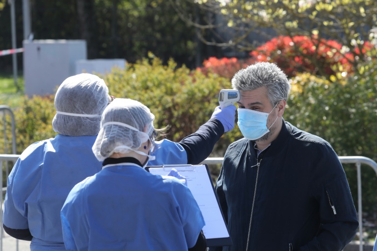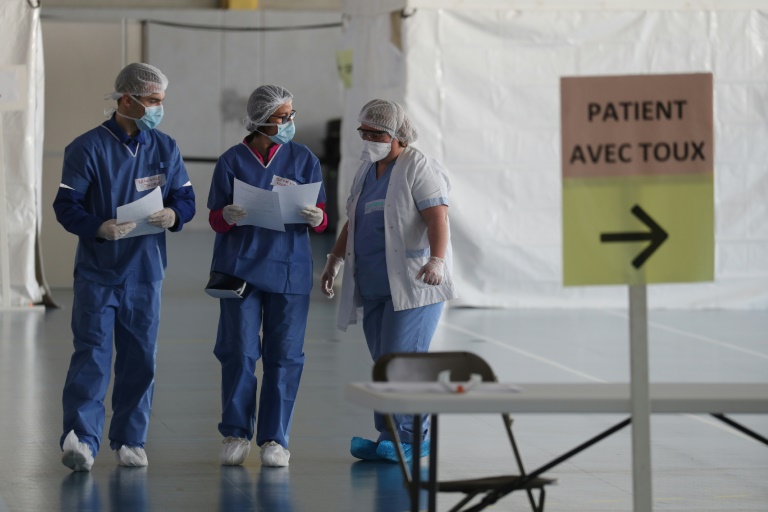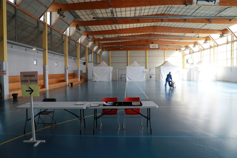 "Ma toux commence à me fatiguer, je respire mal", explique Frédéric à l'infirmière avant d'être conduit dans le premier "centre d'urgences Covid-19" aménagé à la hâte dans un gymnase du Val-d'Oise pour accueillir les malades touchés par le virus et ainsi désengorger les hôpitaux d'Ile-de-France.