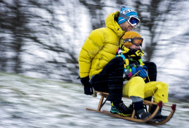 Les habitants de villes néerlandaises et allemandes se sont précipités dehors pour faire de la luge et jouer dans la neige malgré les températures de -5°C.