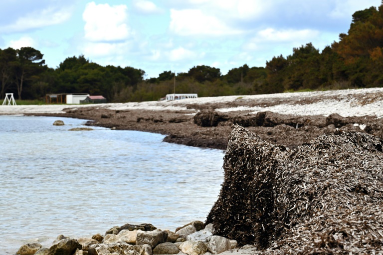 A Sakarun, sur l'île de Dugi Otok, les camions passaient aussi chaque année pour retirer les posidonies, ces herbes de mer dont les feuilles mortes viennent s'échouer sur les plages en hiver et former de larges "banquettes" aux couleurs sombres sur les plages, qu'elles protègent ainsi de l'érosion.
