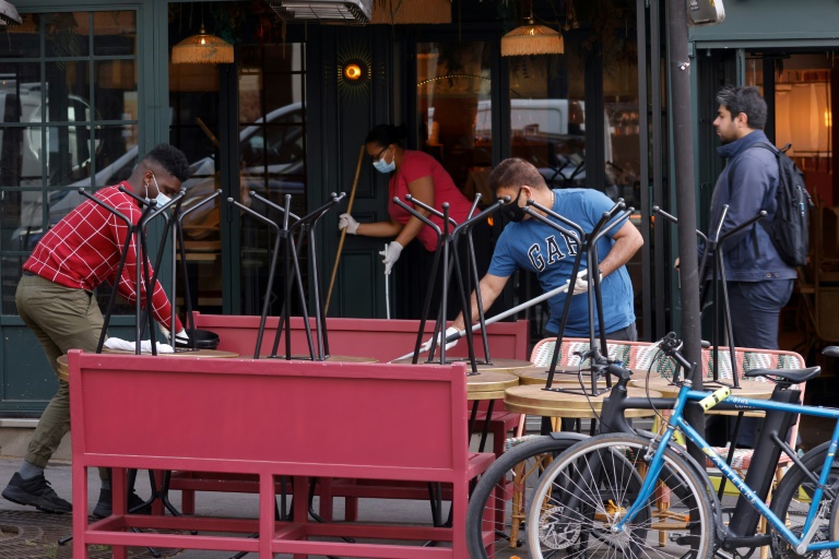 A neuf jours de la réouverture des terrasses, de certains commerces et d'autres activités en France, le nombre de cas positifs au coronavirus continue de baisser, à moins de 20.000 par jour.