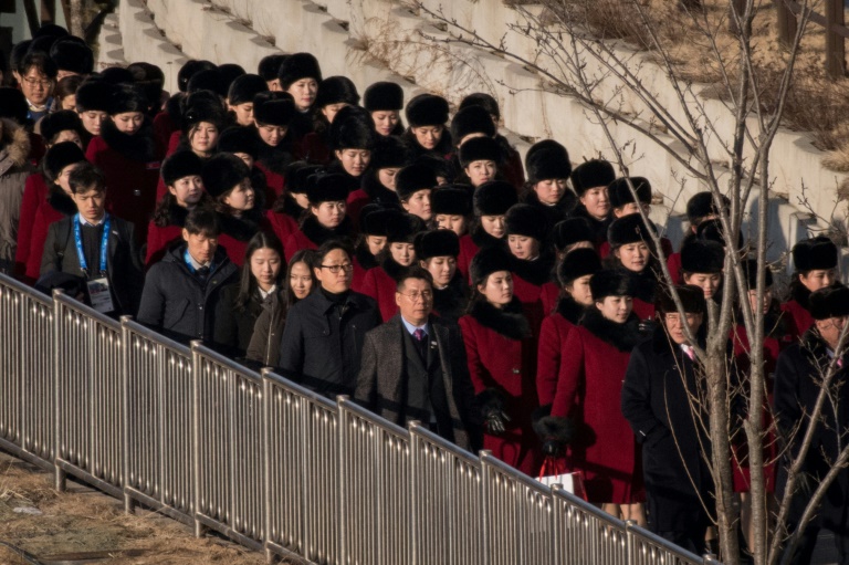 Plus de 200 pom-pom girls nord-coréennes vêtues de manteaux rouge vif et de toques en fourrure noire ont débarqué en Corée du Sud mercredi pour encourager les sportifs des deux Etats rivaux aux jeux Olympiques d'hiver.