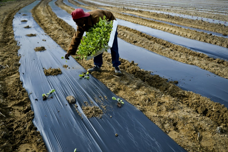 "Ici, nous allons planter des aubergines", explique-t-il, une casquette rouge Ă l'envers sur la tĂŞte.