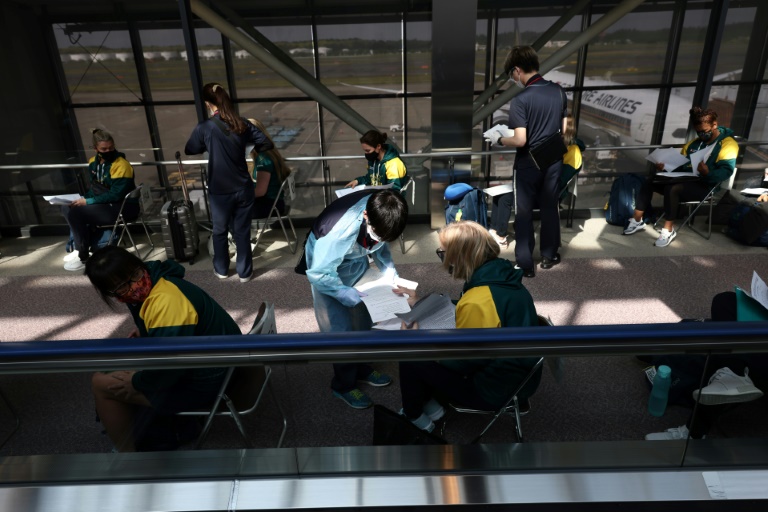 A leur arrivée au terminal de l'aéroport de Narita, près de la capitale nippone, les sportives australiennes, tout sourire, ont salué la presse de la main avant de subir un test de dépistage du Covid-19. Sous réserve que ce test soit négatif, les 21 joueuses et 10 membres du staff devaient prendre leurs quartiers dans la ville d'Ota, située à une centaine de kilomètres au nord-ouest de Tokyo, dans le département de Gunma.